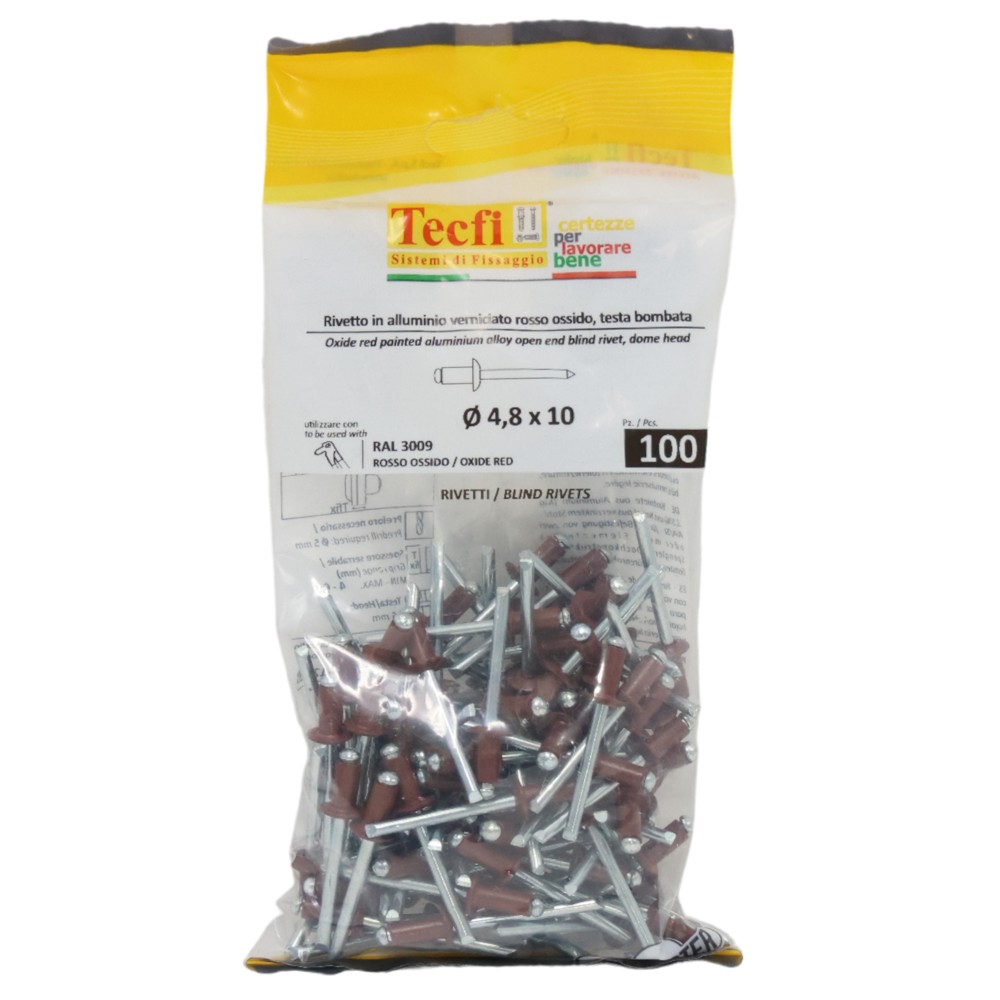 Perçina Alumini/çeliku RAL 3009, Ø 4,8x10mm , Bag 100