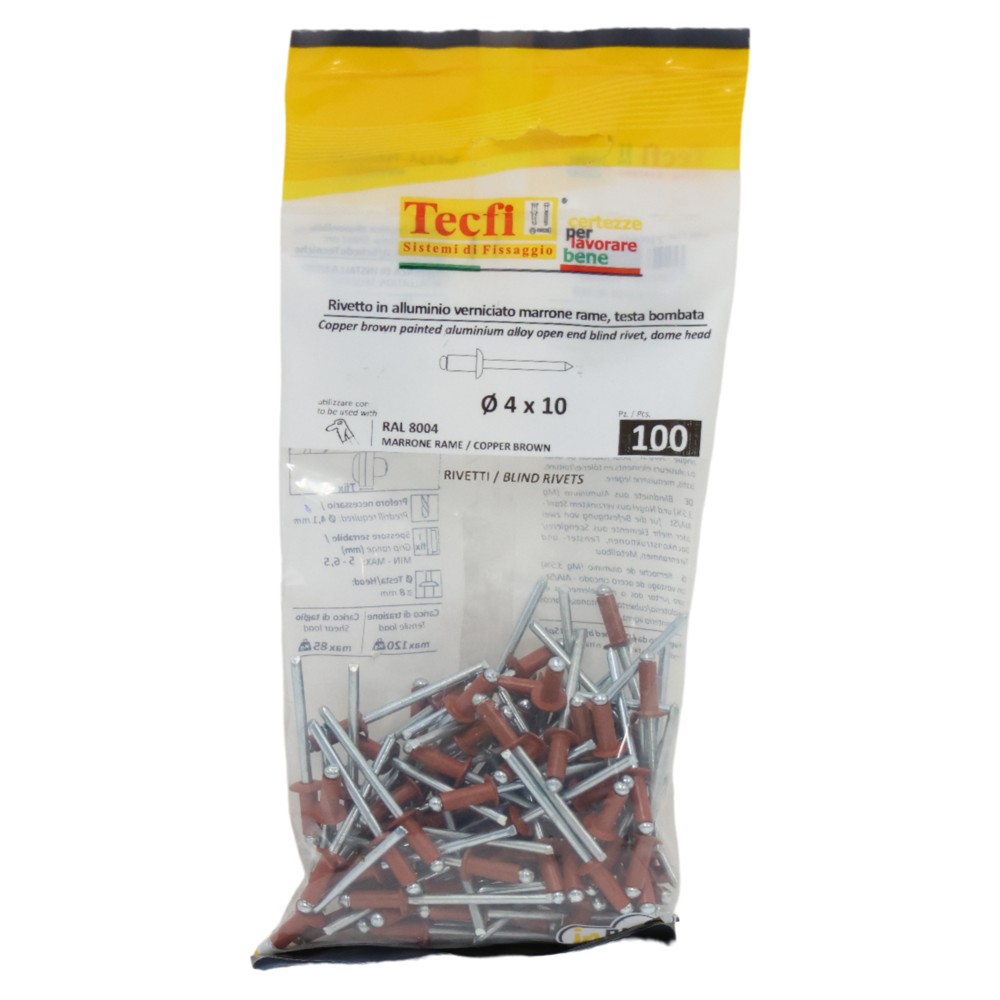 Perçina Alumini/çeliku RAL 8004, Ø 4x10mm , Bag 100