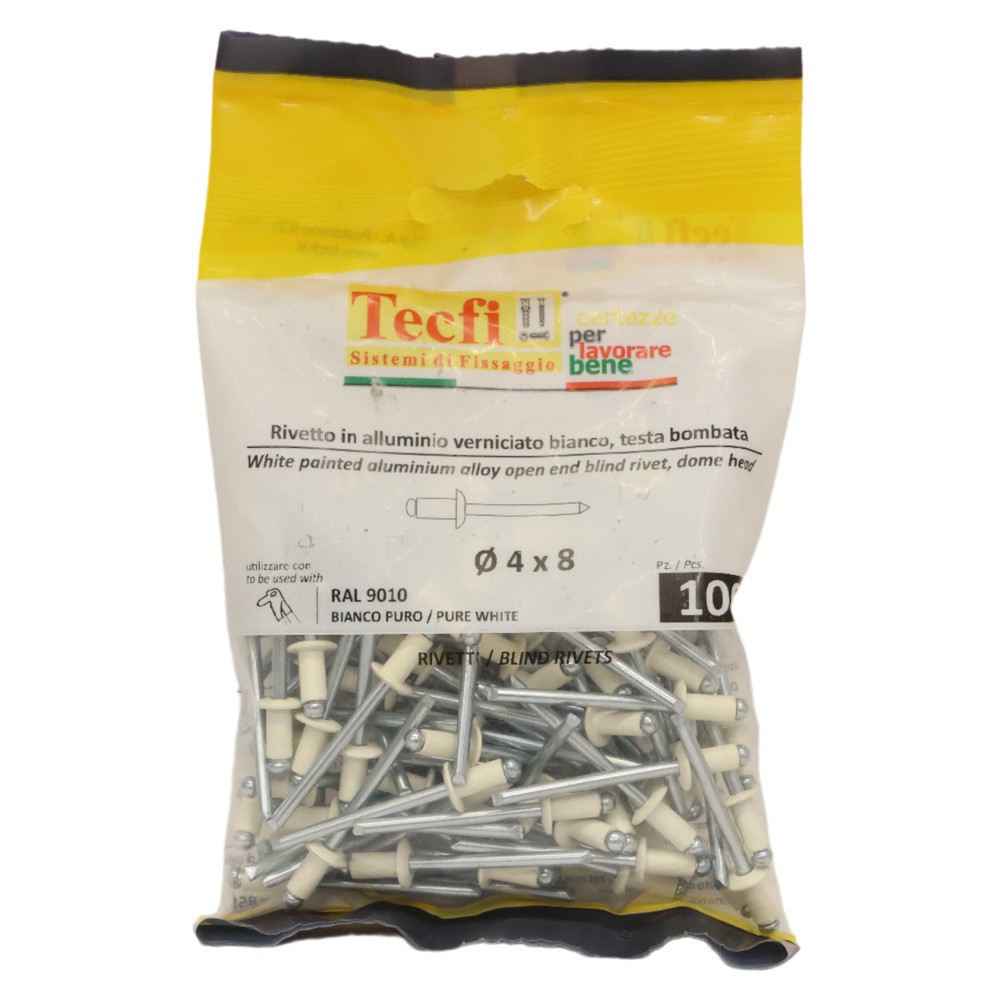 Perçina Alumini/çeliku RAL 9010, Ø 4x8mm , Bag 100