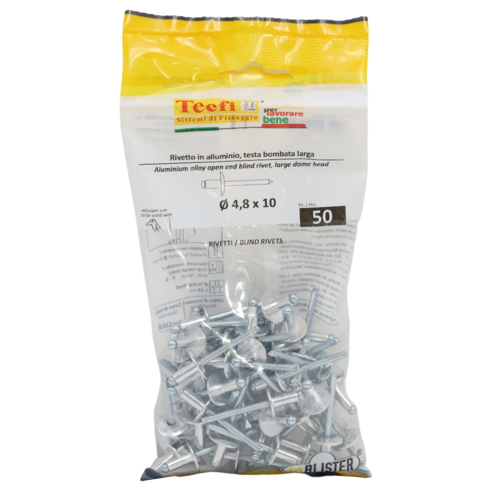 Perçina alumini RAL 9002 alumin/çeliku me pature te gjere, Ø 4,8x10/14mm , Bag 50