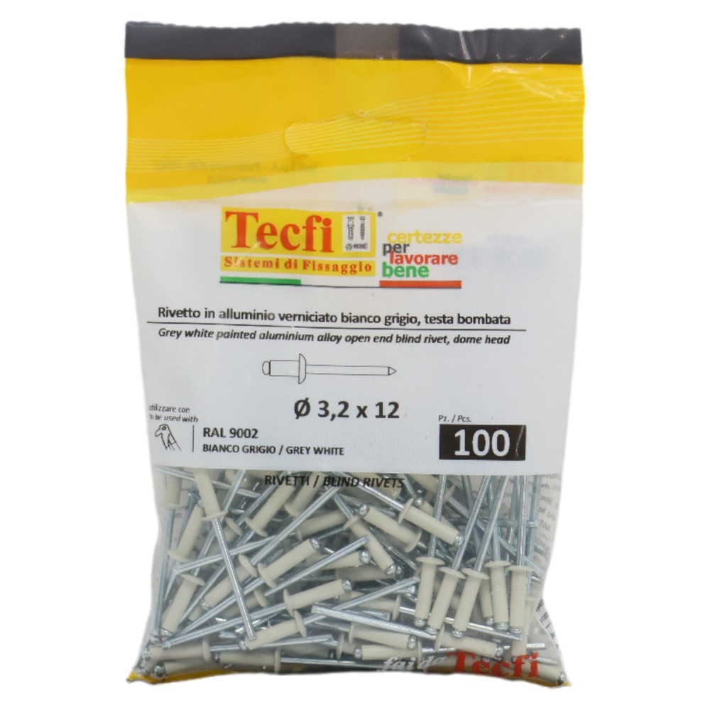 Perçina alumini RAL 9002 alumin/çeliku, Ø 3,2x12mm , Bag 100