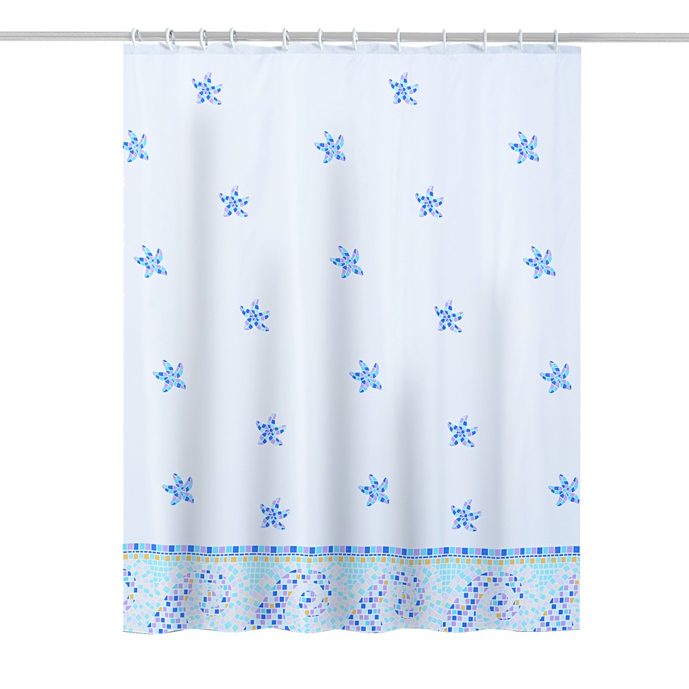 Po vlerësoni:Perde dushi, Raso, poliester, e bardhë/ blu, 180x200 cm