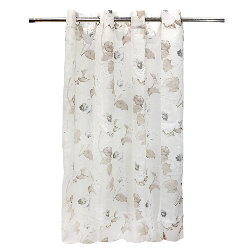 Perde e hollë me unaza, 100% poliestër, e bardhë, 140x260 cm