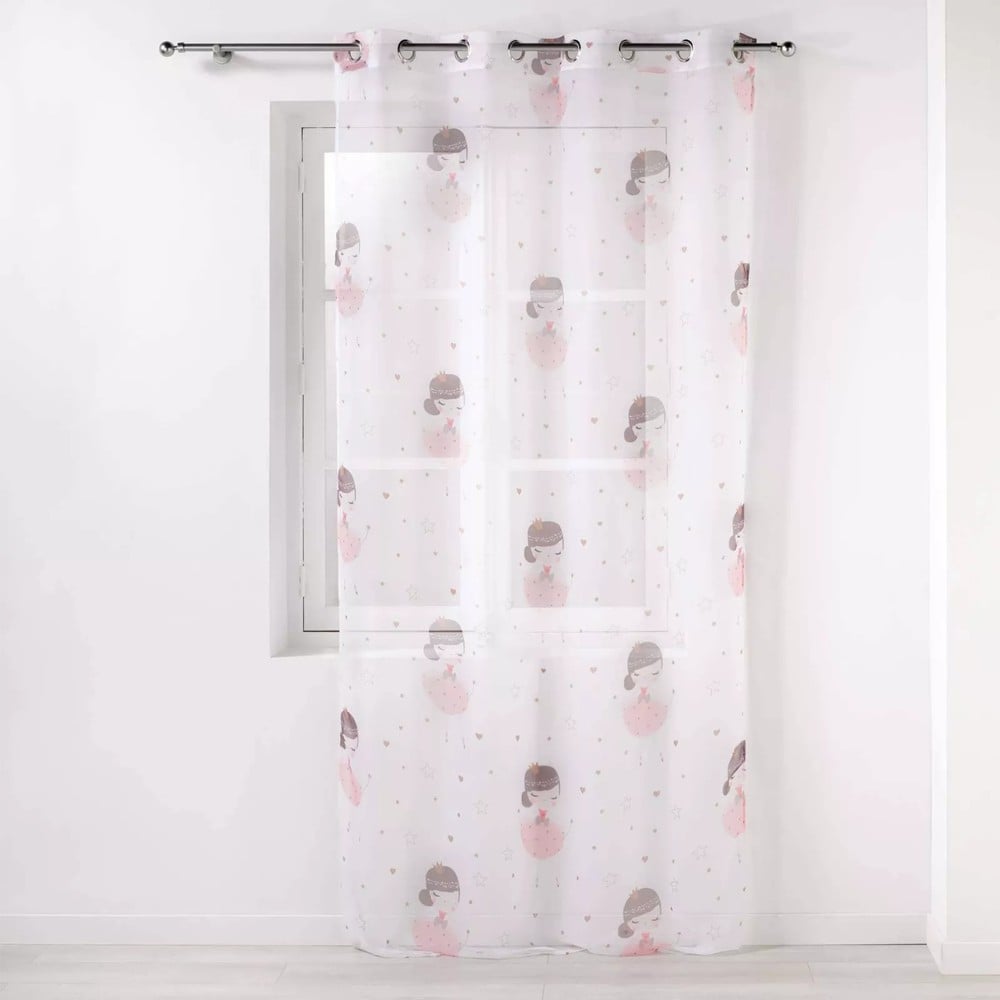 Po vlerësoni:Perde e hollë për fëmijë me unaza, 100% poliestër, e bardhë me personazh vizatimor, 140x240 cm
