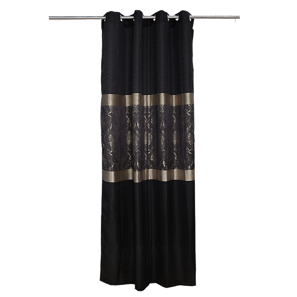Perde e plotë me unaza, 100% poliestër, jacquard, gri e errët/floriri, 140x260 cm