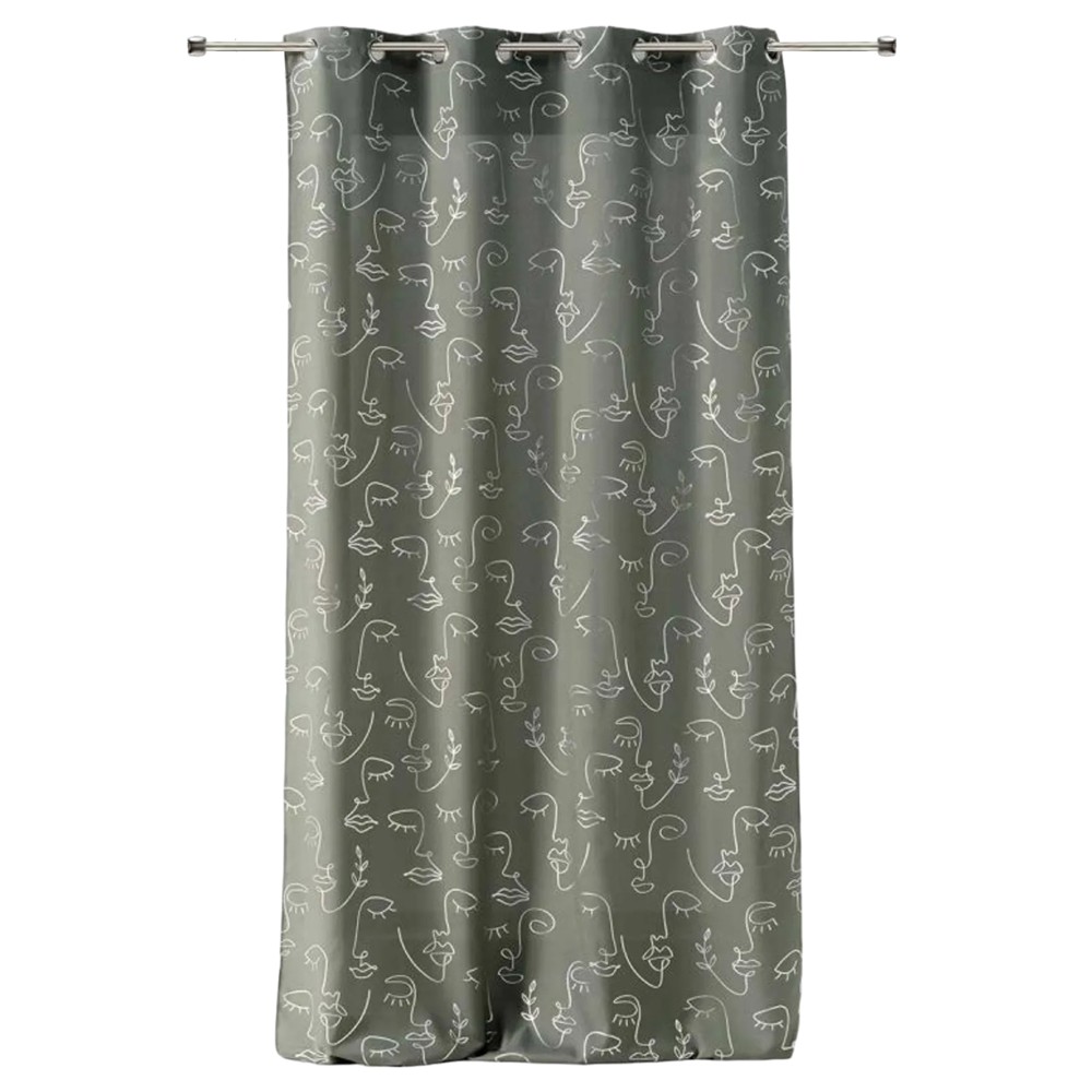 Perde e plotë me unaza, 100% poliestër, jeshile/gri (khaki/silver), 140x260 cm