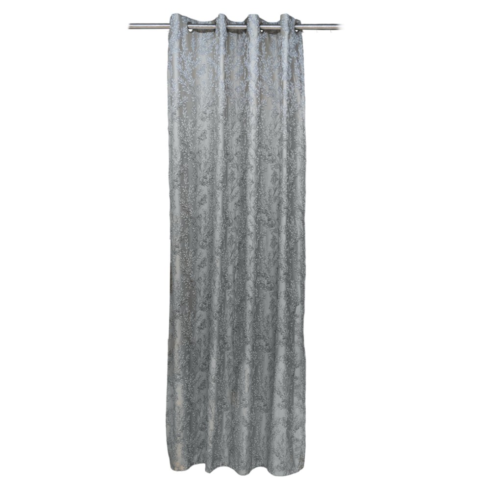 Perde e plotë me unaza, poliestër+lino, krem me dizajn, 150x260 cm