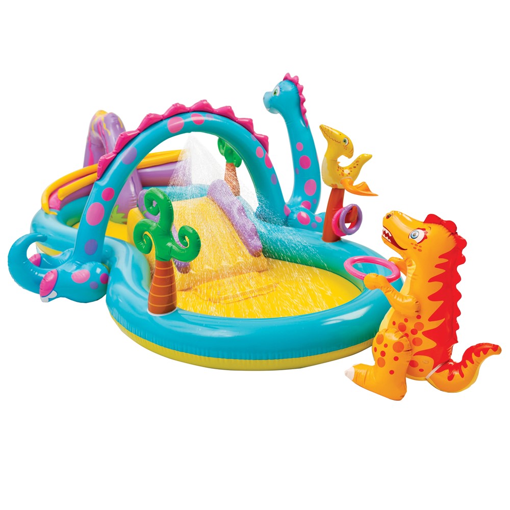 Fëmijët do të argëtohen pa masë qendrën e lojërave parahistorike me katër lojëra në një! Rrëshqitni dhe spërkatni në pishinën duke u argëtuar me Dino Hoops dhe Volcanic Ball Roller (me gjashtë topa me ngjyra të përfshirë) Mbajeni ambjentin të freskët me spërkatjen e lëvizshme të ujit Dino Arch që bashkohet me një zorrë uji. Një rrëshqitëse e butë e përfshirë me një jastëk ulës do të jetë një kënaqësi për të gjithë.