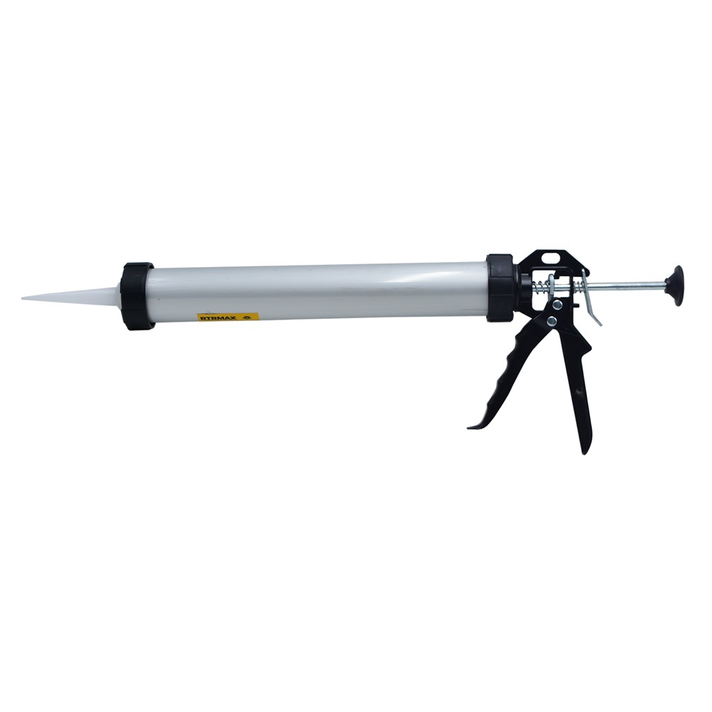 Ideale per shperndarjen e silikonit ne siperfaqet e punes. Forma e pistoletes, ben te mundur shperndarjen vetem te nje paketimi specifik te silikonit ( paketim ne forme sallami ). Ndertuar nga trupim prej alumini, dhe mekanizem prej celiku. Rezistente ndaj perdorimit te perditshem. Kapaciteti prej 600 ml i depozites, mundeson ore t gjata pune. Lehtesisht e perdorshme. Vegel profesionale, ideale per ndertimtarine, pllakashtruesit, etj.