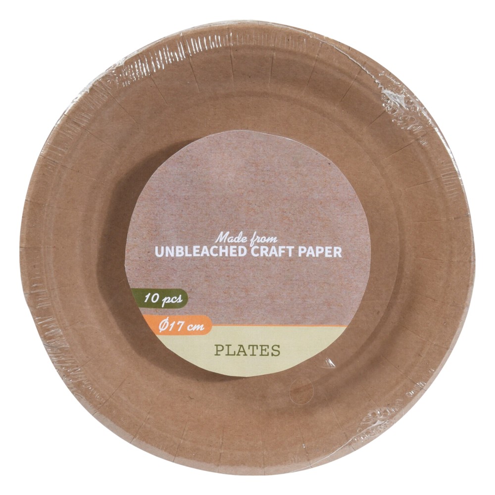 Pjatat prej letre në ngjyrë kafe (pako me 10 copë), me diametër 17 cm, janë një zgjidhje praktike dhe miqësore me mjedisin për servirjen e ushqimeve në festa, piknik apo përdorim të përditshëm. Të lehta dhe funksionale, këto pjata ofrojnë qëndrueshmëri për ushqime të thata apo të lehta. Ngjyra kafe natyrale u jep një pamje të thjeshtë dhe estetike, të përshtatshme për çdo ambient apo rast.