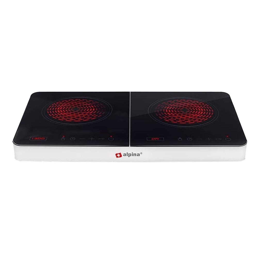 Plitkë dyshe Alpina e dobishëm nëse keni një shtëpi të vogël, jetoni në dhoma ose për kampe. Mund të përgatisni pjatat më të shijshme në këtë pllakë induksioni me 2 vatra gatimi. Gatimi në induksion ka shumë përparësi. Zonat e gatimit nxehen më shpejt sesa me një sobë normale me gaz. Ato gjithashtu ftohen shumë më shpejt. Kjo do të thotë që një pllakë induksioni punon me energji në mënyrë efikase. Gatimi në këtë pllakë induksioni është gjithashtu shumë i sigurt. Për shembull, ekziston një opsjon mbrojtës për fëmijë dhe një mbrojtës nga mbinxehja. Nëse nuk përdorni pikat, ato do të fiken automatikisht. Një avantazh i madh është se plitka pastrohet dhe ruhet lehtë. Një leckë e lagur mbi të dhe mbarove. Ju mund të vendosni temperaturën e zonave të gatimit nga 60 në 240 gradë Celsius. Zona e majtë e gatimit ka 10 nivele të rregullueshme dhe zona e djathtë është e pajisur me 8 nivele. Ju e përdorni këtë pajisje me anë të prekjes dhe në ekranin dixhital 4-shifror mund të shihni se në cilën energji po gatuani. Pllaka induksioni ka një fuqi totale prej 3500 Watt.