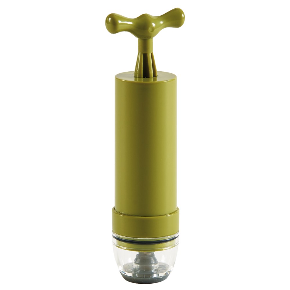 Pompë për heqjen e ajrit në zarfat e vakumit. Eshtë sistemi i ri i ruajtjes së vakumit për çdo lloj ushqimi, pa përdorur energji elektrike ose makineri të shtrenjta. Praktike për ruajtjen e ushqimit.