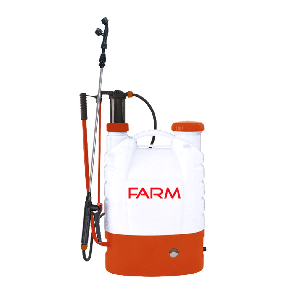 Pompa e shpinës për spërkatje Farm, prodhuar nga një material rezistent plastik, përdoret nga fermerët për spërkatjen e bimëve apo pemëve frutore me insekticide apo ilaçe të tjera. Me një vëllim prej 16 litrash.