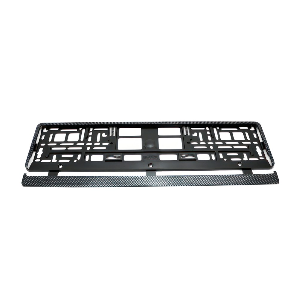 Korniza e targave me cilësi më të lartë e bërë nga plastika rezistente ndaj kushteve të motit, gërvishtjeve dhe dëmtimeve të tjera. Korniza nuk kërkon shpimin e vrimave shtesë në targë falë përdorimit të një shiriti shtesë mbërthyes. Korniza mundëson montim të qëndrueshëm të targës. Ka vrima montimi, falë të cilave nuk keni nevojë të shponi në trupin e makinës. Kompleti përfshin një shirit që mbron tabelën nga rënia. E bërë nga plastika e cilësisë së lartë, e mbuluar me llak, e cila është rezistente ndaj efekteve të dëmshme të kushteve të motit. Korniza është e zezë, e përfunduar me një buzë në karbon.