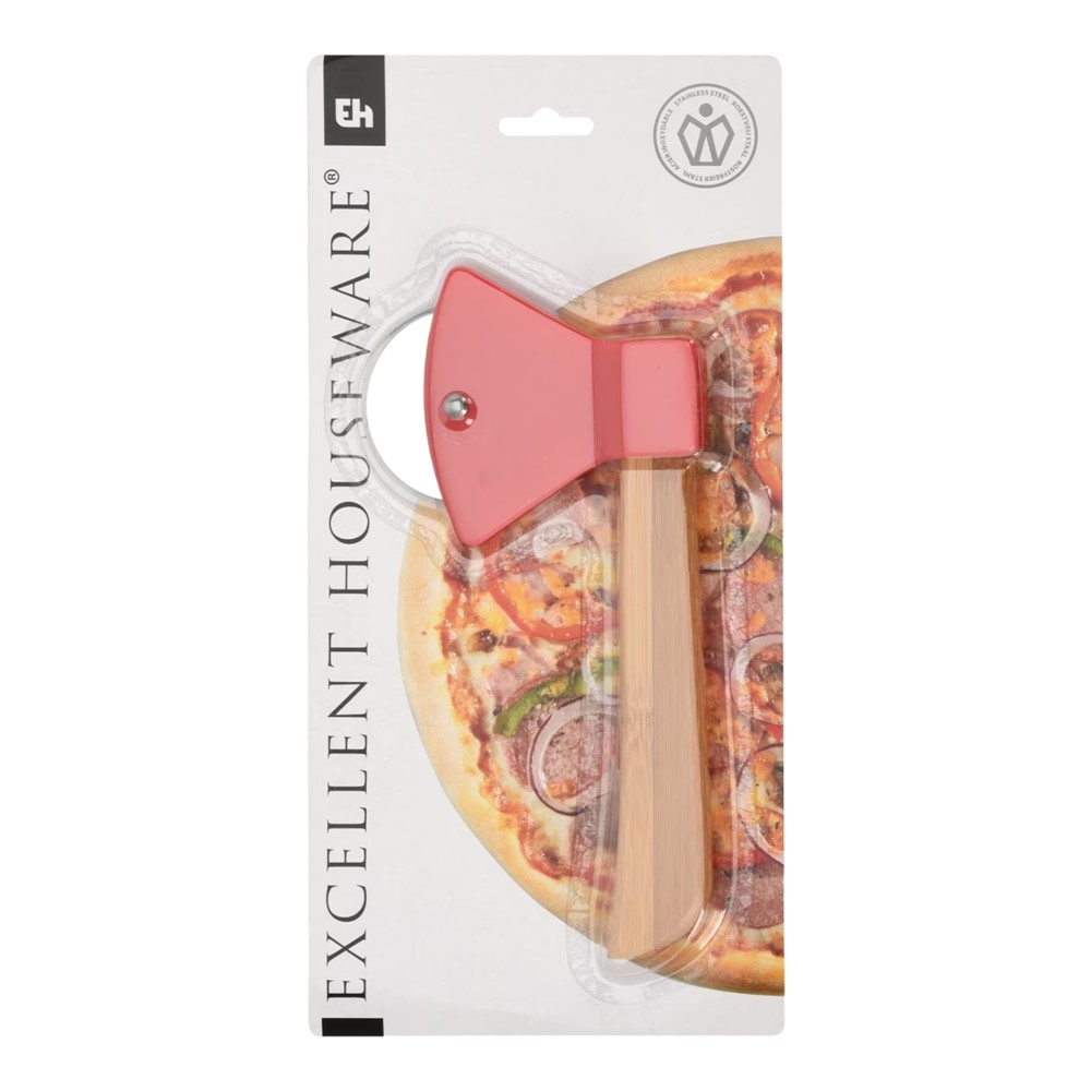 Po vlerësoni:Prerës pica formë sopate, dru / inoks, kafe/kuqe, Dia.20x10 cm