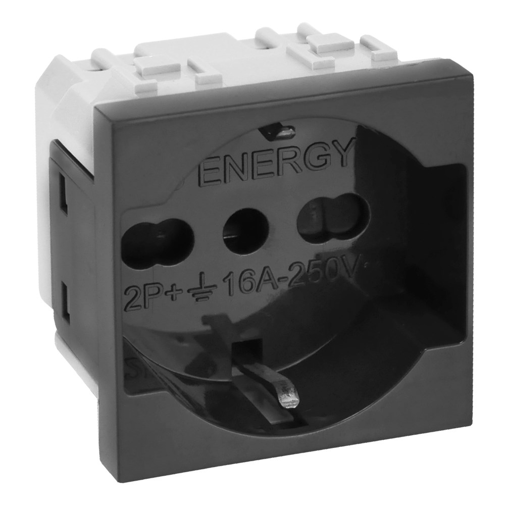 Ekonomi dhe cilësi.Duke përdorur produkte EU Energy ju keni luksin e të kursyerit duke pasur cilësinë e dëshiruar.Priza shuko mund të përdoret për të lidhur në rrjet pajisje të ndryshme të cilat janë me spinë të standartit gjerman dhe italian (me dy ose me tre kunja).Duke qenë në ngjyrë gri krijonë mundësinë e kombinimit me disa ngjyra kapaku.