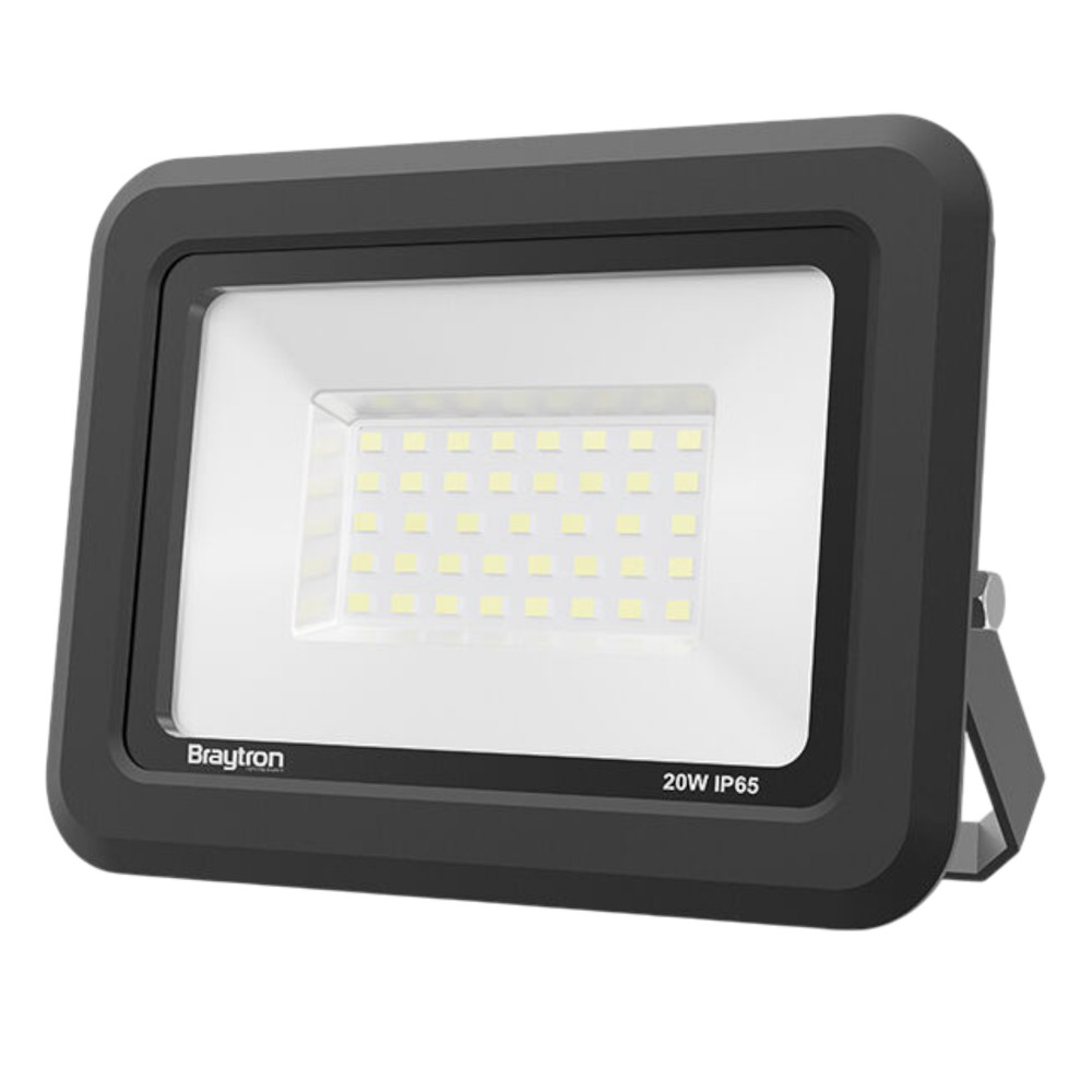 Prozhektor LED Braytron 20W, me dritë neutrale 4000K dhe fuqi ndriçimi 1620 lumen. Punon në tension 220-240V dhe ka mbrojtje IP65 ndaj ujit dhe pluhurit, i përshtatshëm për përdorim të jashtëm dhe të brendshëm. Efikas, jetëgjatë dhe rezistent ndaj kushteve atmosferike.