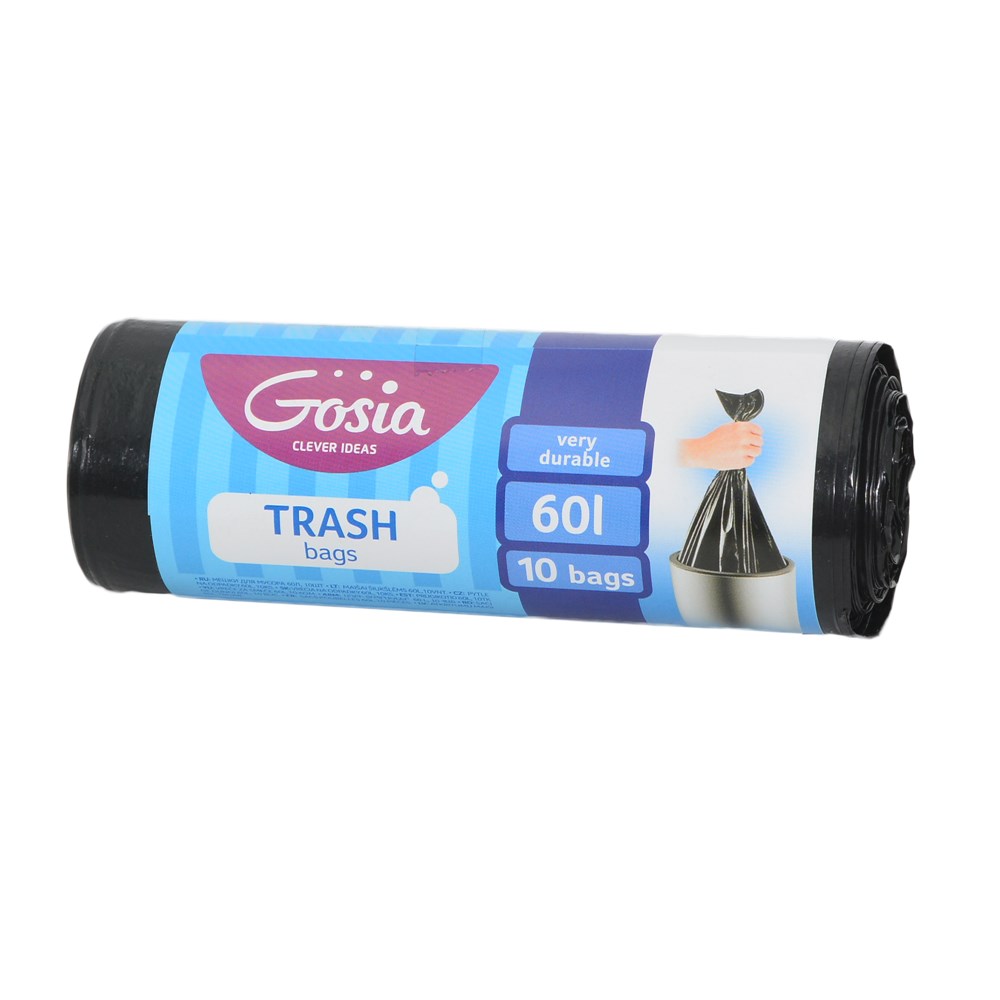 Qese mbeturinash," Gosia", plastike, 60 lt, 53x65 cm, e zezë, 10 ndarje, me litar, 1 copë