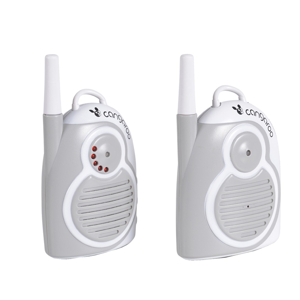 Radio monitoruese për bebe, Cangaroo, në ngjyrë bezhë. Kjo radio monitoruese është një aksesor tepër praktik dhe ndihmues për nënat në mënyrë që të mbajnë fëmijën të monitoruar gjatë kohës së gjumit. Ky produkt të jep mundësinë e dëgjimit të pastër deri në 1.3 km në hapësirë të hapur. Gjithashtu ka aktivizues të zërit, tregues të baterisë së ulur, kontroll të volumit, dhe dy kanale me frekuencë 446 MHz - 434 MHz. Funksionon me fishën elektrike 220-240 V e cila ndodhet në paketim ose me bateri 3AAA x 15 të cilat nuk përfshihen në paketim.
