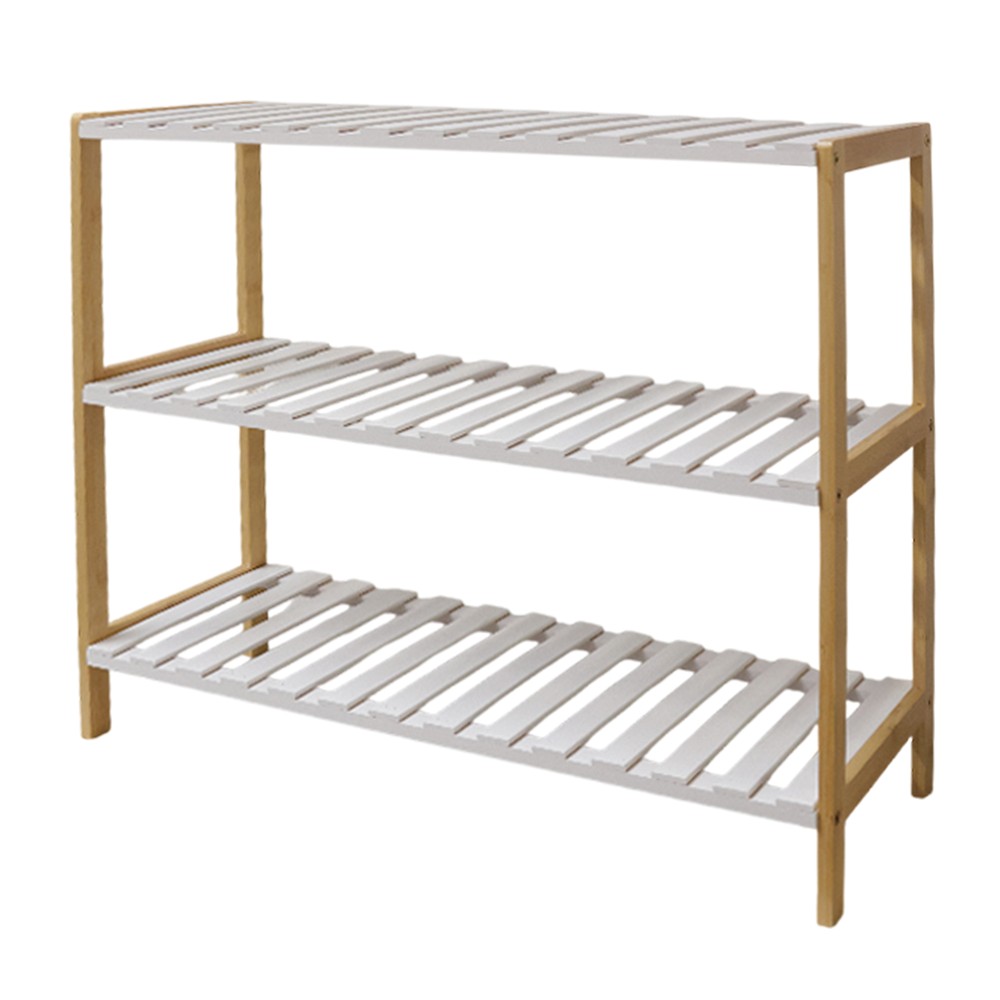 Raft këpucësh ''Turin'', 3 sergjenë, bambu, e bardhë/kafe, 70x25.7xH54.5