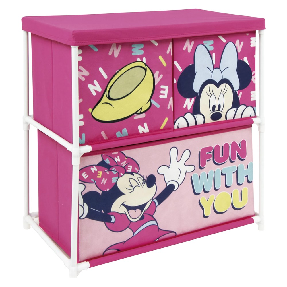 Magazinues për dhomë fëmijësh me dizenjo disney Minnie Mouse dhe me përmasë 53x30x60 cm, e cila shërben si magazinues edhe si dekorues. Bërë nga materiali poliestër dhe strukturë plastike e lëvizëshme plotësisht. Pastrohet dhe montohet lehtë. Përbëhet nga katër sirtarë. Dizenjo moderne dhe tërheqese për fëmijët.