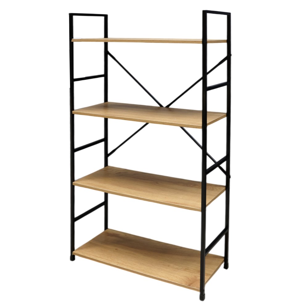 Raft shumëfunksional, 3 nivele, metal/melaminë, e zezë/lisi natyral, 58.6x23.5xH112cm