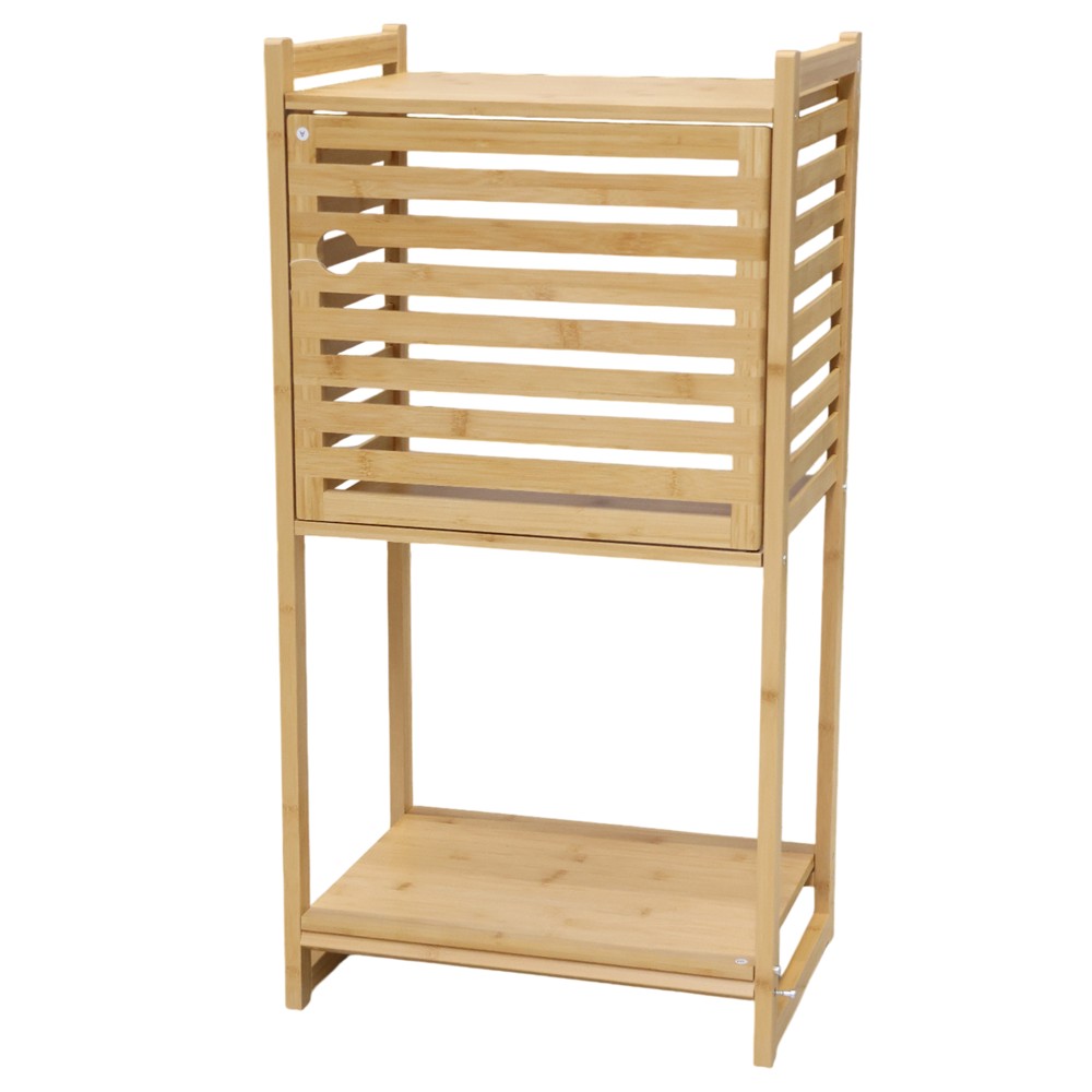 Ju prezantojmë me raftin shumëfunksional "Mistia S" prodhuar në dru bambu, i cili rritet në zona me humiditet të lartë, duke e bërë këtë raft tepër rezistente ndaj lagështirës së banjos. Ngjyra e drurit natyral sjell një pamje të freskët dhe natyrale në banjën tuaj. I pajisur me një raft dhe një kanat plotëson nevojat tuaja për magazinim. Përmasat, lartësia 81.5 cm x gjerësia 42 cm x thellësia 30 cm.