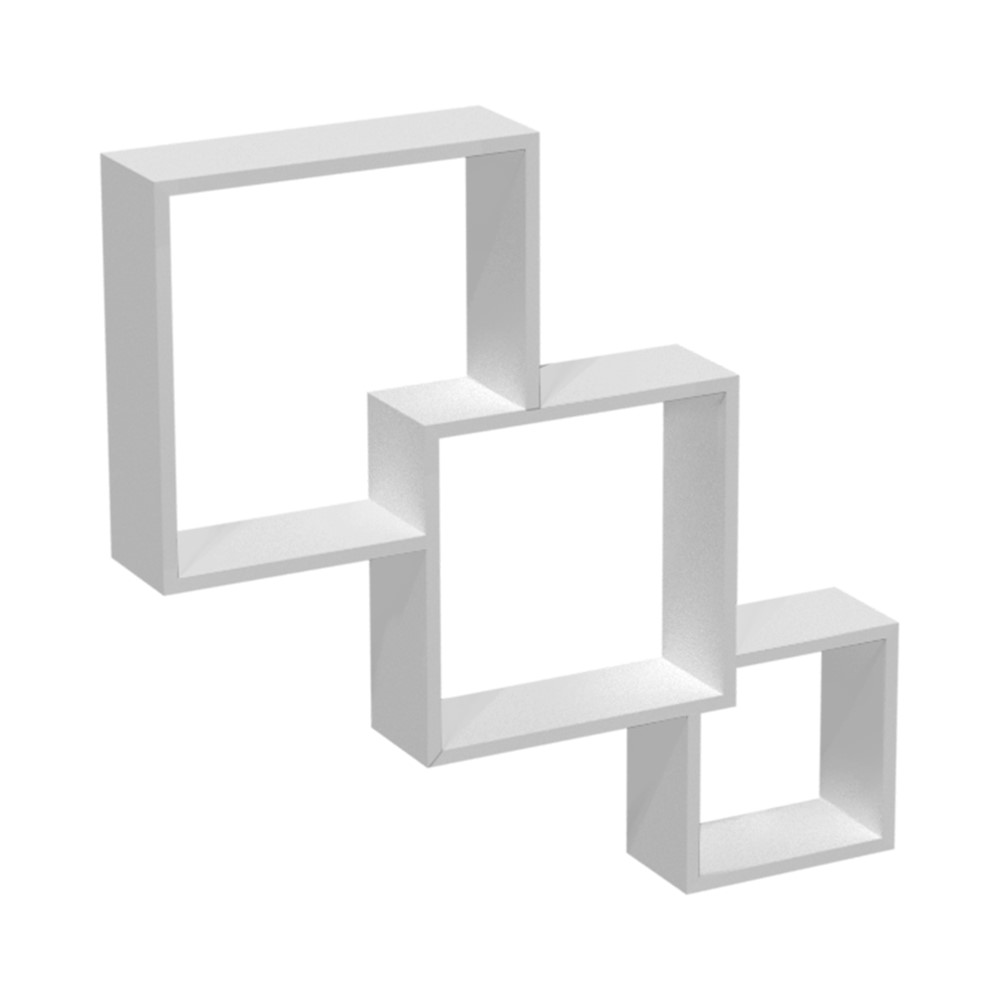 Set me rafte modulare të vetëqëndrueshëm, në formë katrore, prej materiali melamine, me përmasa 15x32x32 cm, 15x28x28 cm dhe 15x20x20 cm, në ngjyrë të bardhë. Raftet mund të montohen lehtësisht dhe në mënyrë të shpejtë në mure dhe falë sistemit të fshehur të fiksimit, kllapat nuk mund të shihen, nuk ka nevojë për aksesorë për të fshehur bulonat ose vidat dhe instalimi nuk kërkon përdorimin e profileve. Ky set është i përshtatshëm për përdorim në ambientet e brendshme të dhomave të ndenjjes, dhomave të gjumit, zyrave, studiove, etj.
