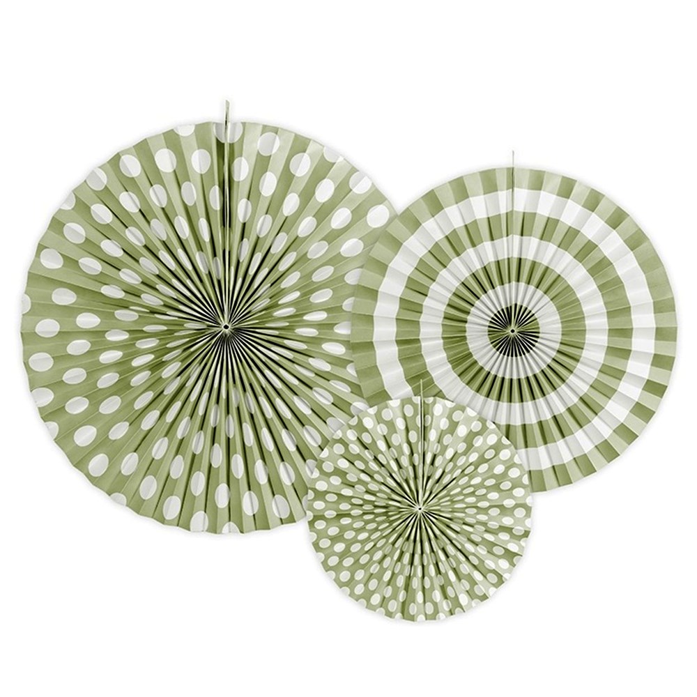 Rozete dekorative, "Pastelove", me printim, ngjyrë ulliri pastel, 40 cm, 32 cm, 23 cm, 3 copë, 1 pako