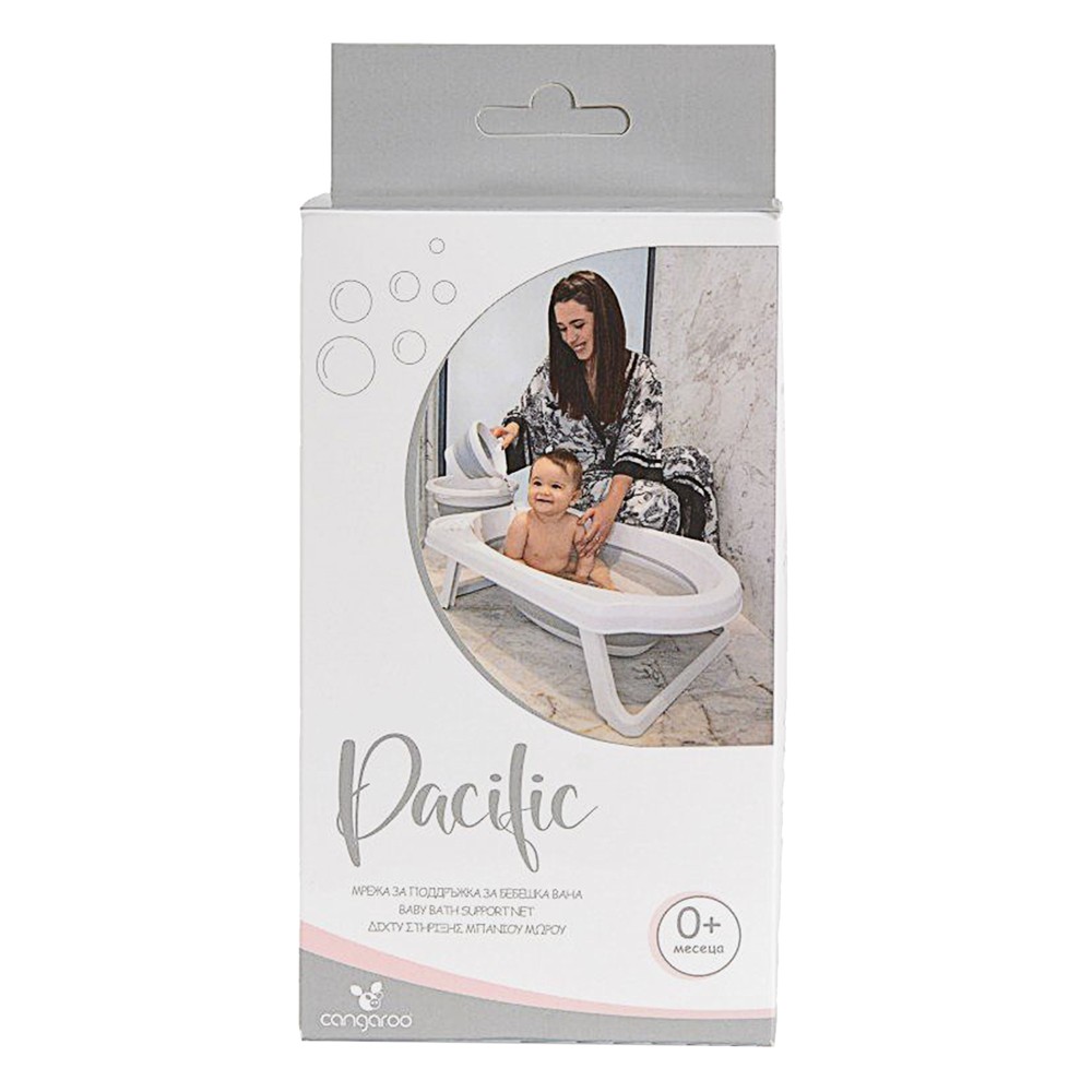 Rrjeta për vaskë Cangarro, prej materiali poliestër, në ngjyrë të bardhë, ka një gjatësi prej 80 cm. Produkti është projektuar për t'u ngjitur dhe fiksuar lehtësisht në vaskë, duke siguruar një përdorim të sigurt për fëmijën gjatë banjës. E përshtatshme për fëmijë 0-6 muajsh.