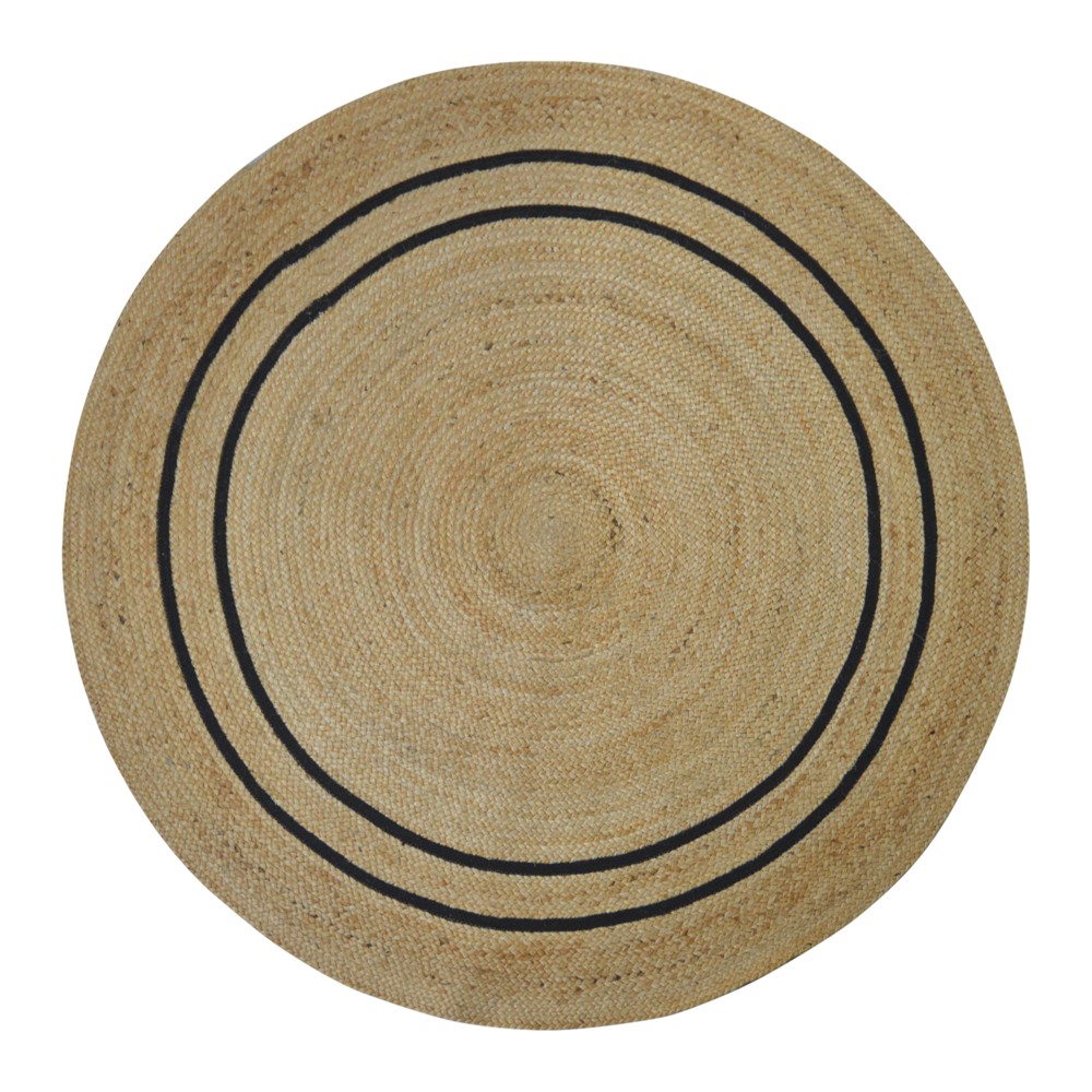 Rrugicë rrethore, 80% jute & 20% pambuk, bezh/e zezë, Dia. 100 cm
