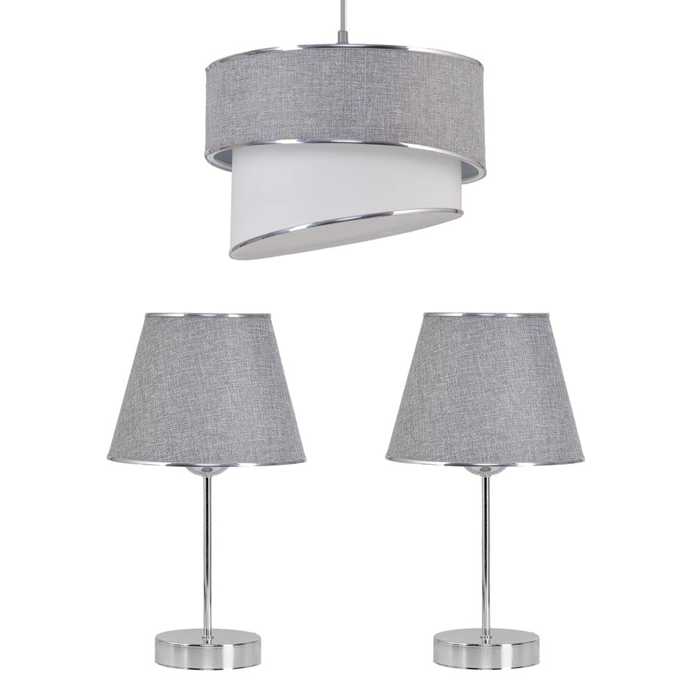 Po vlerësoni:Set, 1 ndricues I varur + 2 ndricues tavoline , E27, 1x60 W, tekstil ngjyre gri/I bardhe, H35 cm