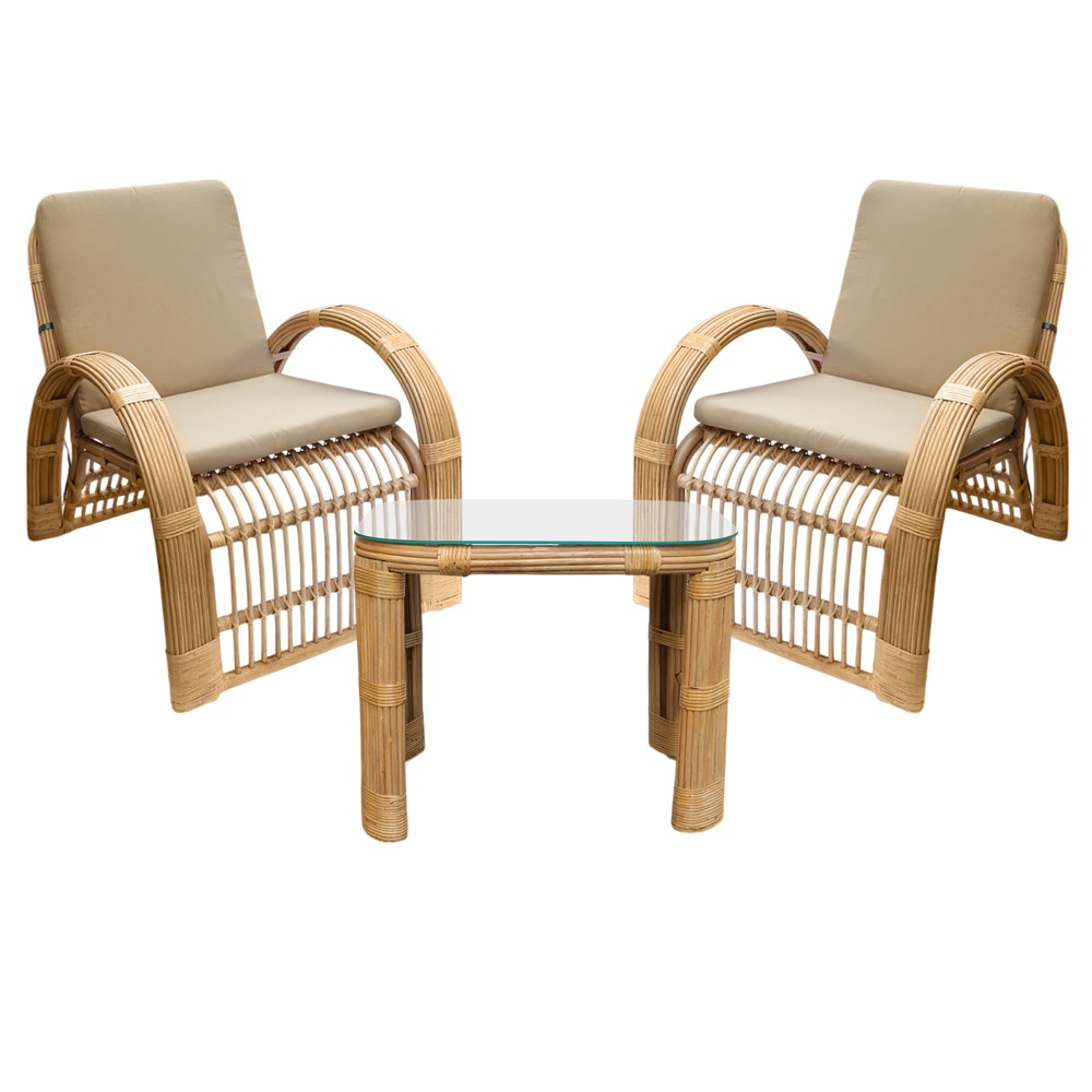 Prodhuar nga strukture natyrale dhe ndertuar nga artizanet e punimit te drurit tropikal. Detajet e imeta te punimit dhe oret e shumta te kaluara mbi projektimin dhe realizimin e ketij produkti e bejne te pa cmueshme vleren e kesaj vepre. Ideale per aredimin e hapesirave te jashtme dhe ballkoneve duke realizuar nje atmosfere unikale. Rezistenca natyrale e rattanit, e ben jetgjate nder vite ket produkt.