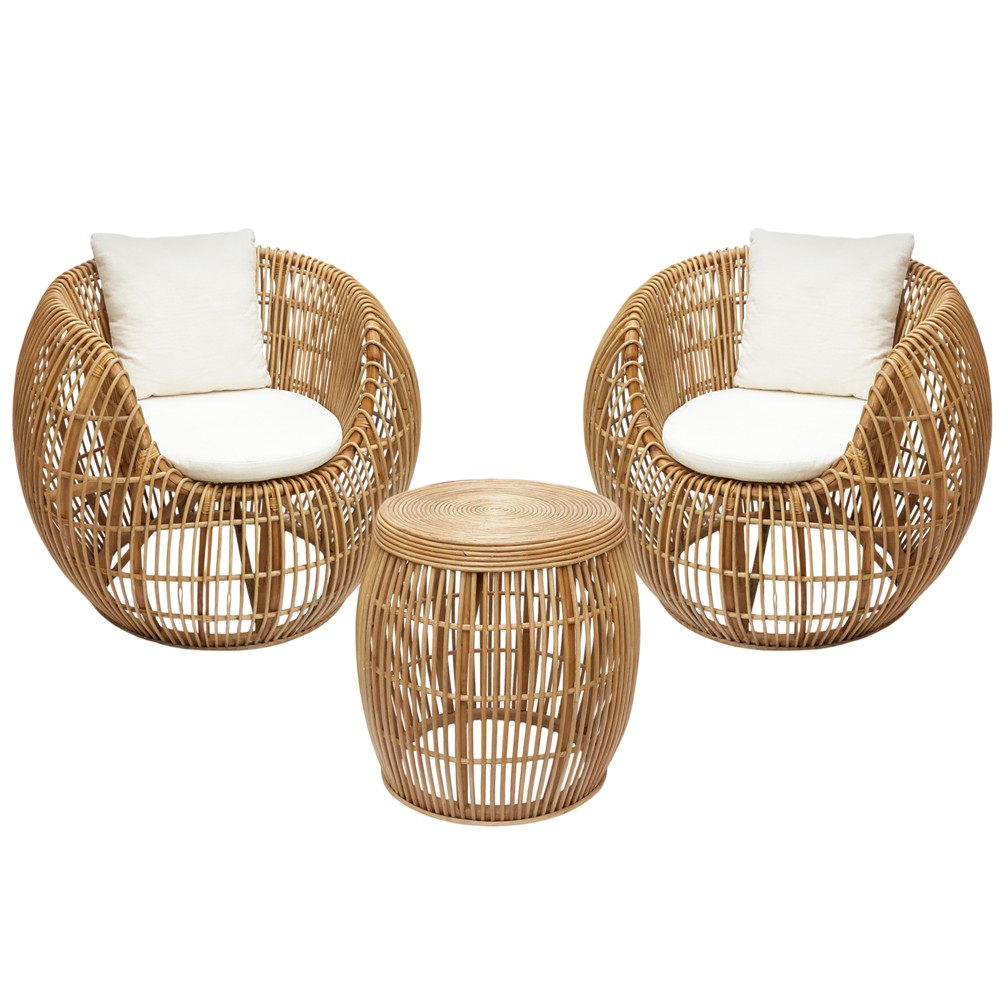 Prodhuar nga strukture natyrale dhe ndertuar nga artizanet e punimit te drurit tropikal. Detajet e imeta te punimit dhe oret e shumta te kaluara mbi projektimin dhe realizimin e ketij produkti e bejne te pa cmueshme vleren e kesaj vepre. Ideale per aredimin e hapesirave te jashtme dhe ballkoneve duke realizuar nje atmosfere unikale. Rezistenca natyrale e rattanit, e ben jetgjate nder vite ket produkt.