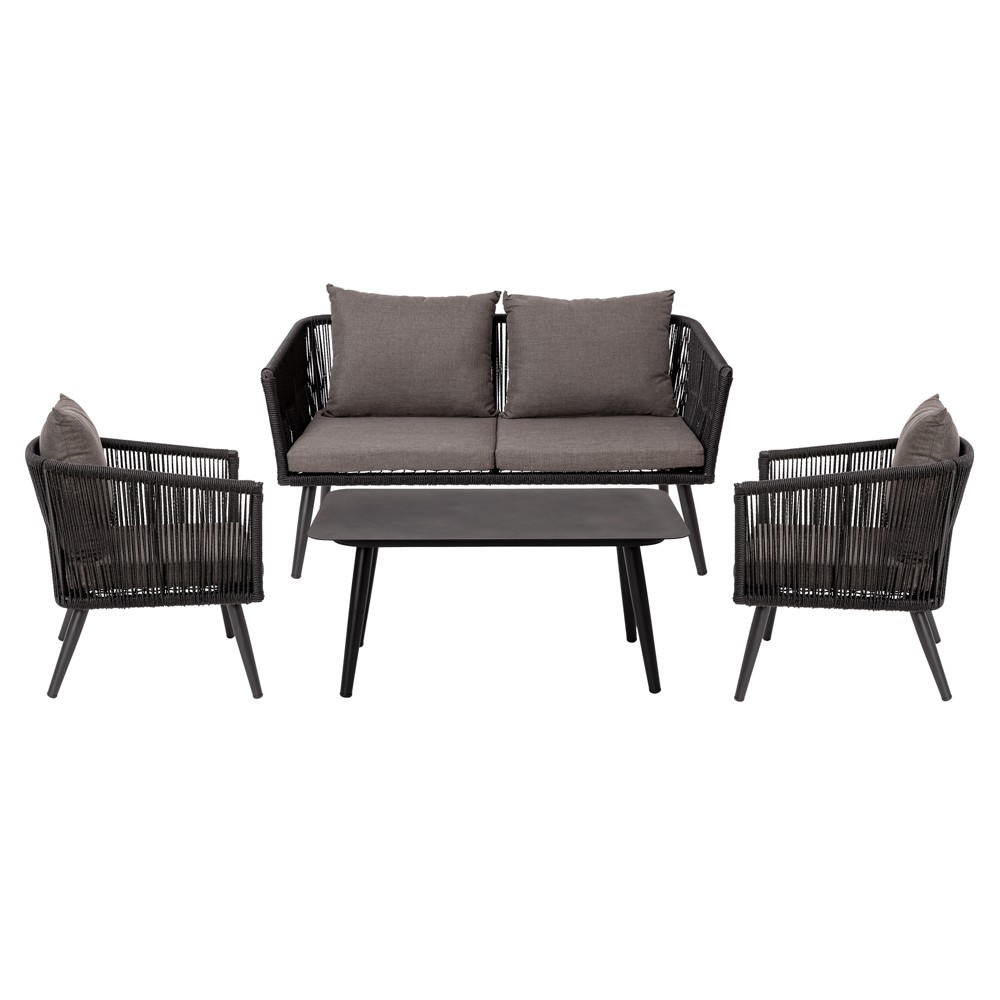 Set 2 kolltuk tek + 1 kolltuk dopjo + 1 tavolinë Dili, alumin / thurje PE, e zezë, 65x70xH69/136x70xH69/90x50xH46.5 cm