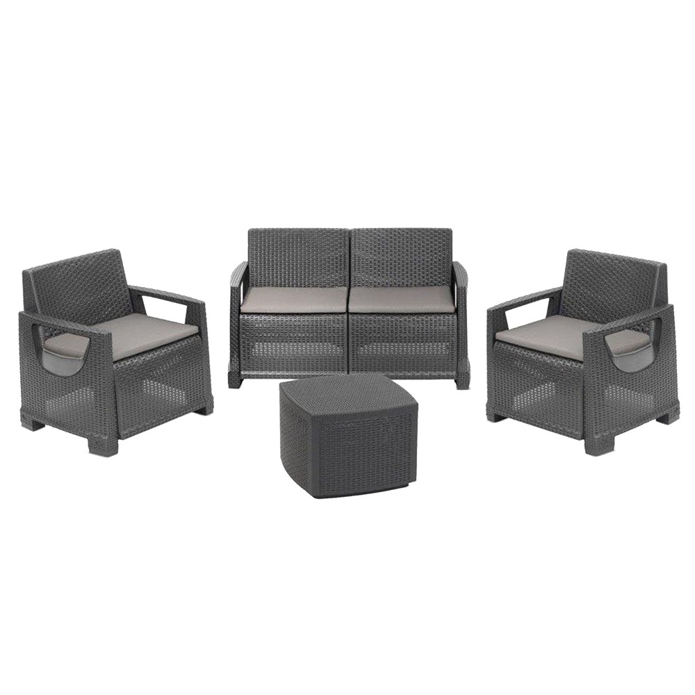 Prodhuar nga plastike e cilesise maksimale per ti rezistuar agjenteve atmosferik dhe rrezatimit Diellor gjate gjithe vitit. Me permasa perfekte per te akomoduar 4 persona. Tavolina e mesit siguron hapesire mjaftueshem per te vendosur kafene apo mengjesin tuaj. Seti perfekt per relaksimin dhe shijimin e hapesires tuaj te gjelber.