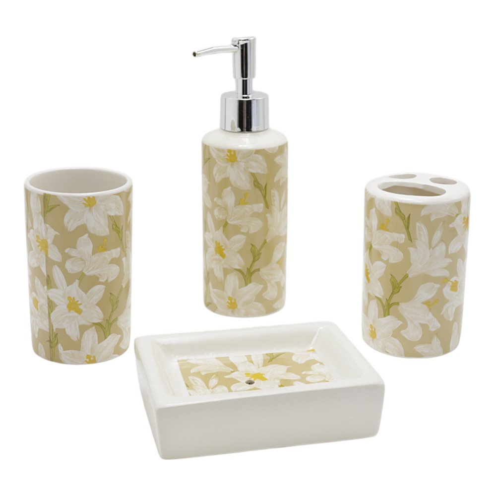 Po vlerësoni:Set aksesorë tualeti, 4 copë, Floris, qeramikë, e bardhë, jeshile