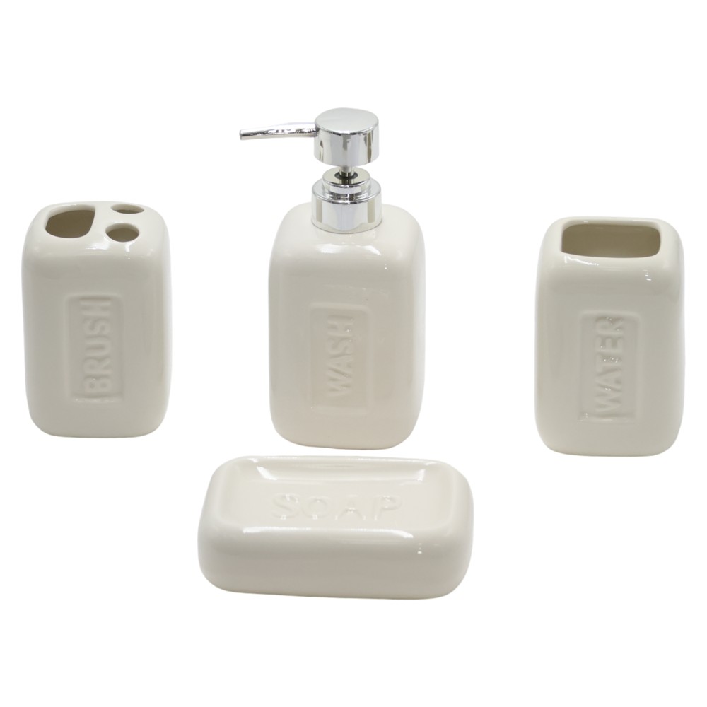 Set aksesorë tualeti, 4 copë, qeramikë, e bardhë