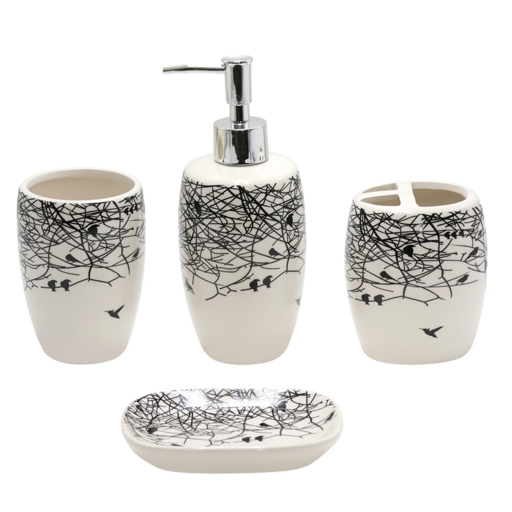 Set aksesorë tualeti, 4 copë, qeramikë, e bardhë/e zezë