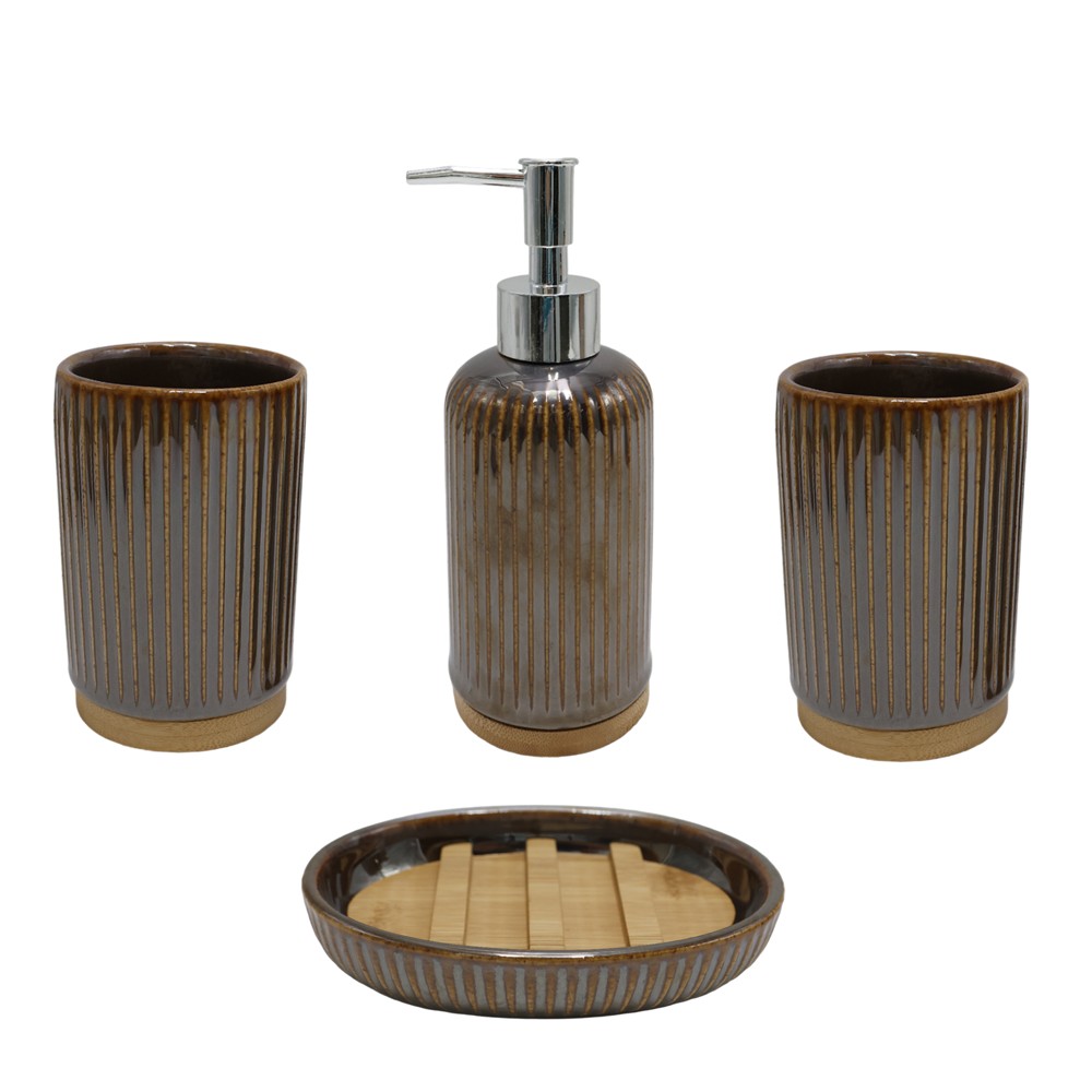 Set aksesorë tualeti, 4 copë, qeramikë, kafe