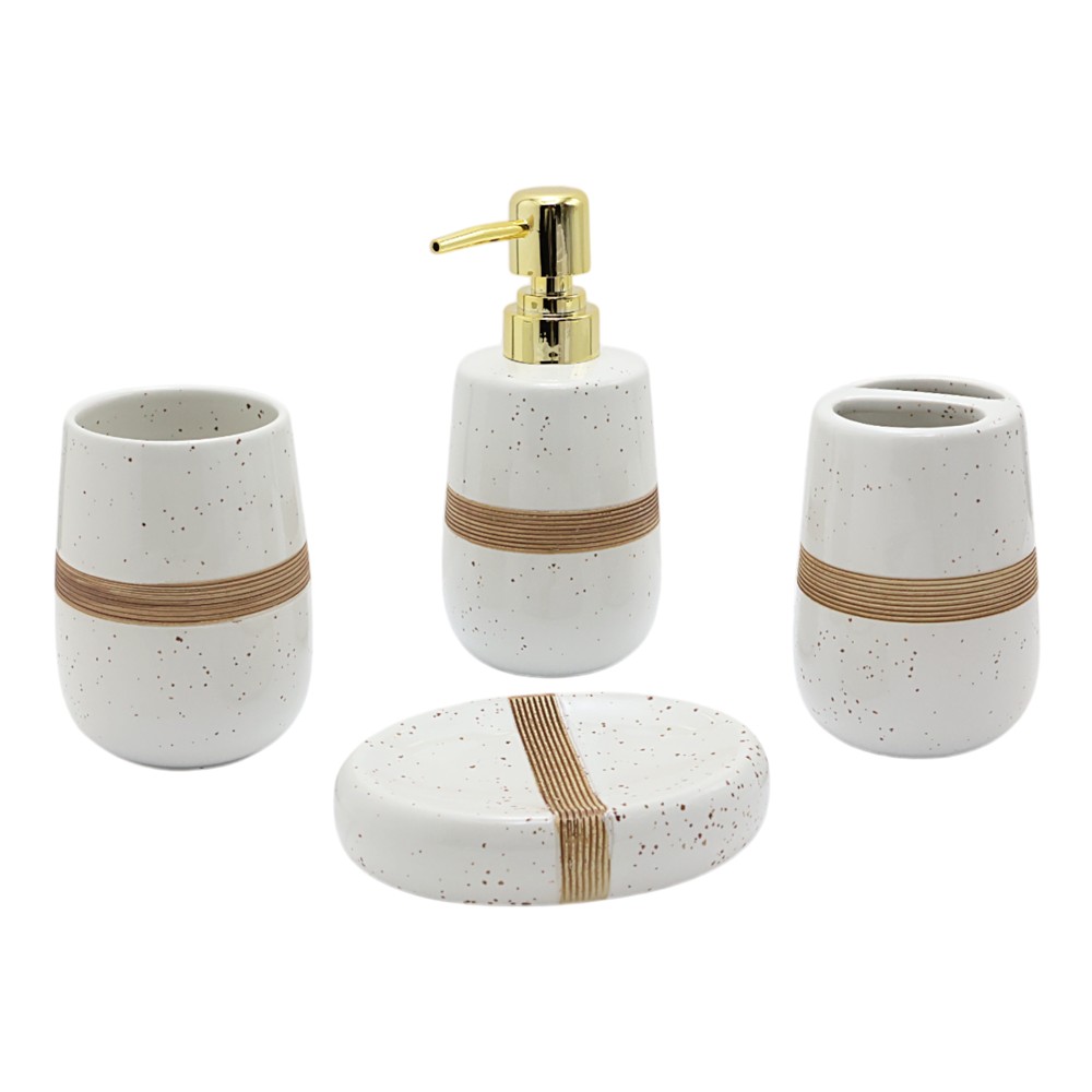 Po vlerësoni:Set aksesorë tualeti, 4 copë,Stripe W, Qeramikë, E bardhë, 2X 12x8.5 cm, 6x11 cm, 17x6.5 cm