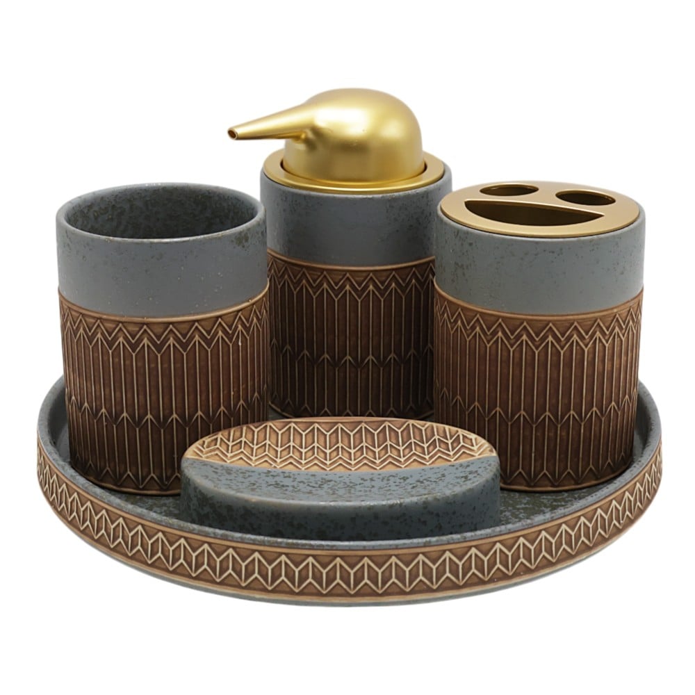 Set aksesorë tualeti, 5 copë, Kohi, qeramikë, blu, kafe