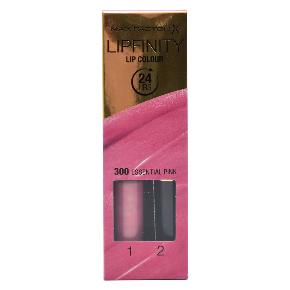 Set buzëkuq i lëngshëm dhe balsam hidratues, 300 Essential Pink, LipFinity, 2-step Long Lasting, Max Factor, plastikë, 2.3 ml + 1.9 g, rozë, 2 copë
