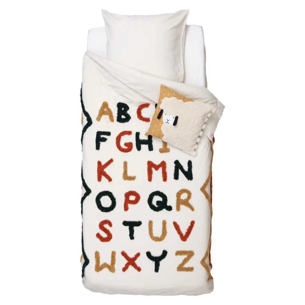 Set carcaf për fëmijë, prej material pambuku antialergjik. Seti përmban një këllëf jorgani dhe një këllëf jastëku, në ngjyrë mikse me dizenjo shkronjash, në përmasë 200x140 cm.