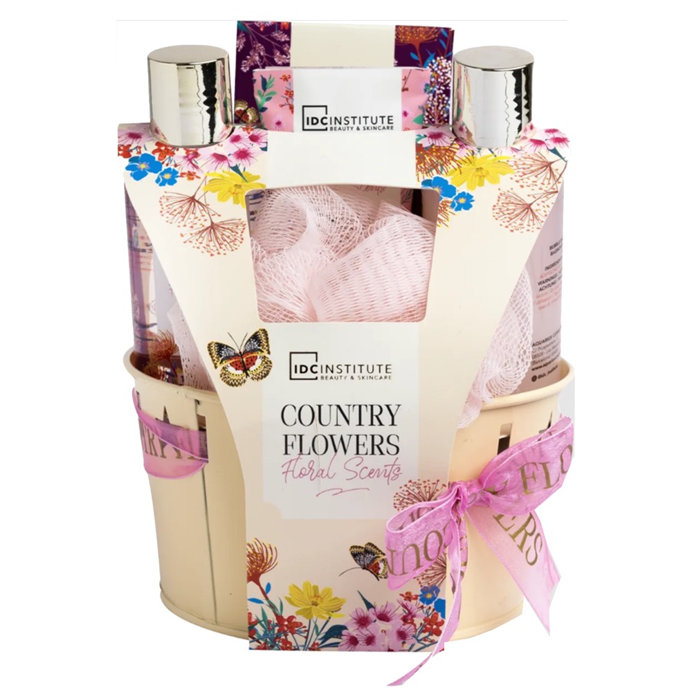 Set dushi, IDC, Country Flowers, xhel dushi 125 ml, kripë dushi 100 gr, bath 125 ml, lotion trupi 50 ml, bathing net, 1 pako