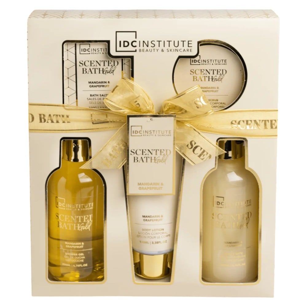 Seti i dushit IDC Gold ofron një përvojë luksoze të relaksimit dhe kujdesit për lëkurën. Ai përfshin 200 ml bubble bath për të krijuar një atmosferë spa, 200 ml xhel dushi për pastrim të freskët, 100 gr kripë dushi për relaksim të plotë, 60 ml scrub për eksfolim të butë dhe 100 ml krem trupi për hidratim maksimal. Të gjitha këto produkte vijnë të paketuar në një pako elegante, perfekte për t’u bërë dhuratë ose për të shijuar një moment qetësie për veten.
