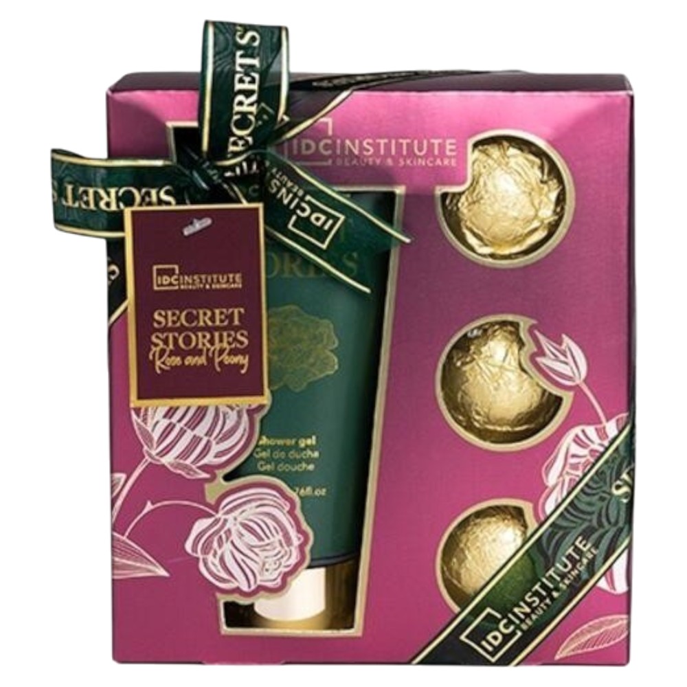 Seti i dushit IDC Institute "Secret Stories" ofron një përvojë relaksuese dhe aromatike për kujdesin e trupit. Ai përfshin 200 ml xhel dushi për pastrim të thellë dhe tre bath bombs prej 50g secila, për të krijuar një atmosferë spa në shtëpi. Ideale për të shijuar një moment qetësie.