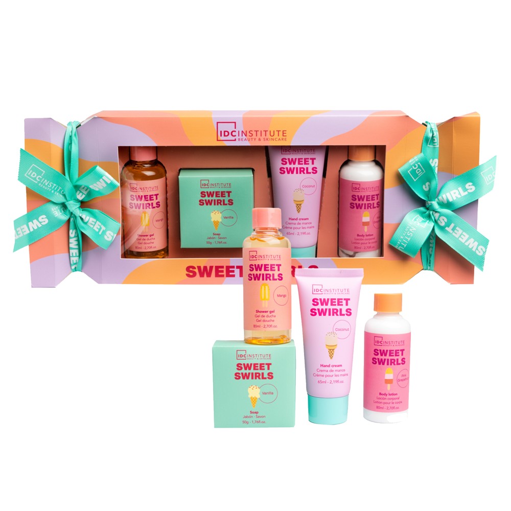 Seti i dushit IDC Sweet Swirls ofron një përvojë të paharrueshme të kujdesit për trupin me aroma të freskëta dhe ushqyese. Pakoja përfshin xhel dushi 80 ml me aromë mango, për një pastrim të butë dhe freskues, krem duarsh 65 ml me aromë kokos, që hidraton dhe mbron lëkurën, lotion trupi 80 ml me aromë grejpfrut rozë, për një lëkurë të butë dhe të shndritshme, dhe sapun 50 gr me aromë vanilje, që lë pas një aromë të ëmbël dhe të ngrohtë. Ky set është ideal për të ushqyer dhe hidratuar lëkurën tuaj çdo ditë, duke ju dhënë një ndjesi freskie dhe qetësie.