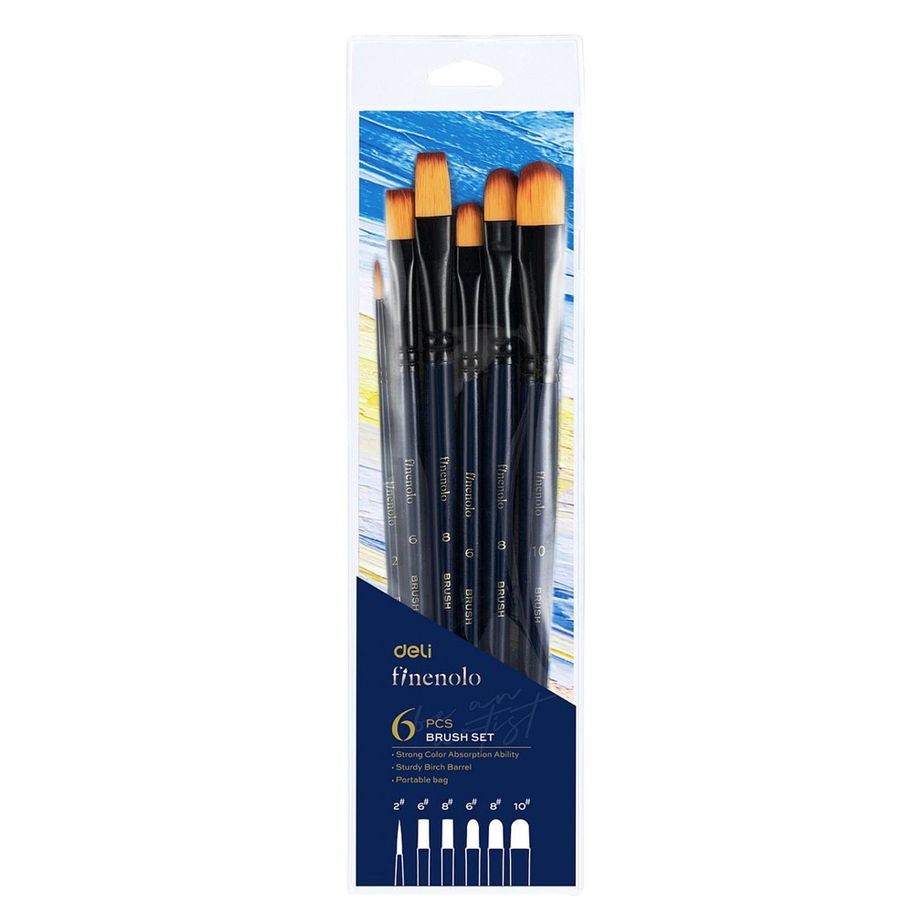 Set furca akrilike për pikturë Deli, mikse, 6 copë. Ky set përfshin furca të ndryshme për përdorim me bojëra akrilike, të dizajnuara për aplikim të lehtë dhe krijues në projektet e pikturës.