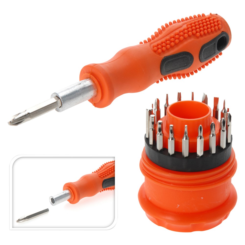 E ndertuar nga materiale te cilesore. Me doreze te bute prej gome dhe suport maksimal ne montimin dhe cmontimin e vidave te paisjeve te ndryshme. Inkorporimi i majave ne trupin e kacavides, eviton humbjen dhe ben me praktik nderrimin e tyre. Ideale per realizimin e projekteve DIY. Seti permban : S 1mm,1.5mm, 3.5mm,4mm, PH000, PH00,PH0,PH1, T4,T8, H0.9, H1.5,H2,H2.5,H3,H4, maje trekendeshe